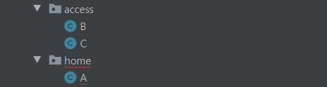 예제의 클래스 구조 클래스 A에서 public 클래스 B와 default C에 접근했을 때 결과