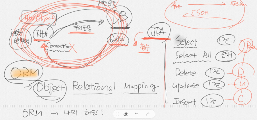 JPA를 사용하면 전송된 쿼리에 대한 응답이 있을 때, 응답 데이터를 받고, 데이터 타입을 자바 오브젝트로 바꾸고, 연결된 세션을 끊고, 연결된 커넥션을 끊고, 이러한 모든 일련의 작업을 JPA에서 함수 하나로 제공!!!