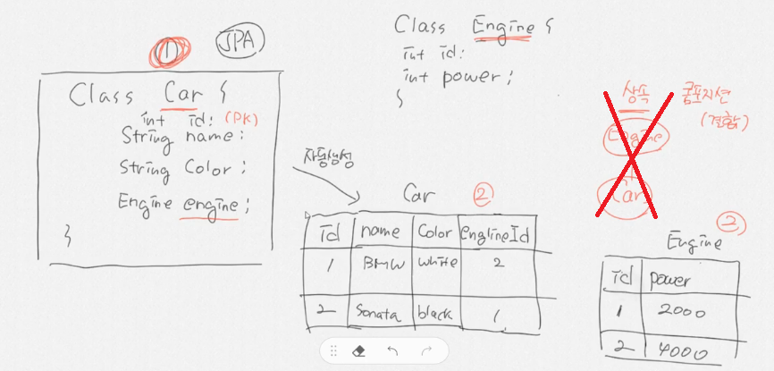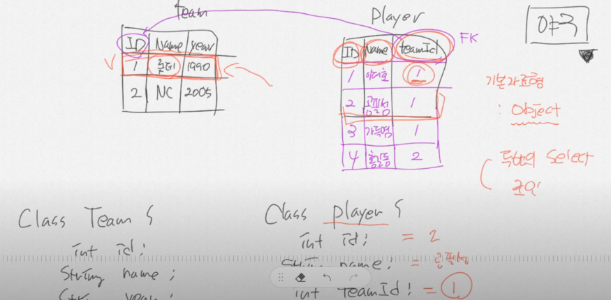 자바에서 프로그래밍할 때는 객체를 저장하고, 이를 DB에 저장할 때는 JPA가 자동으로 FK를 매핑해준다.
