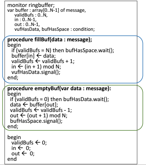 - Information Hiding(정보 은폐) : 공유 데이터는 모니터 내의 프로세스만 접근 가능