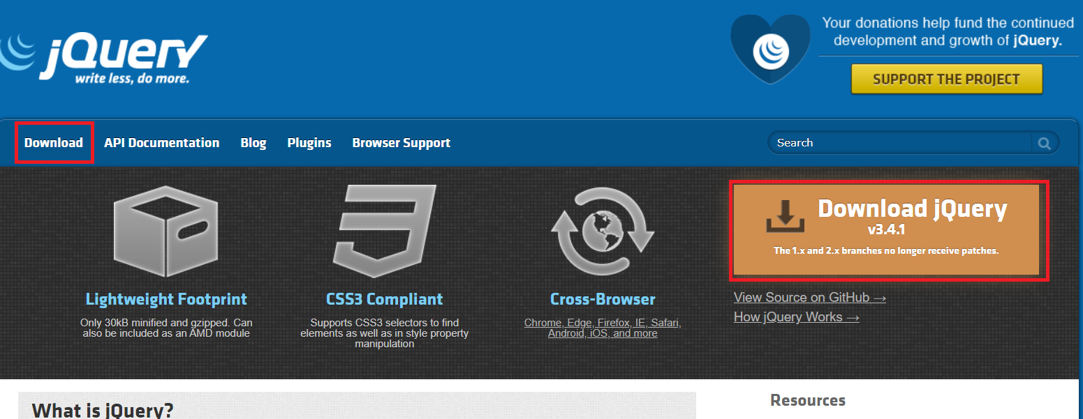 http://jquery.com 에 접속해서