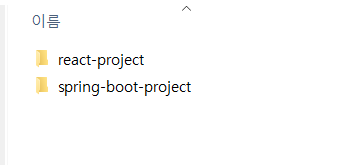 react-project 폴더에는 리액트 프로젝트를 생성하고, spring-boot-project 폴더에는 스프링 부트 프로젝트를 생성할 예정입니다. 이제 정말 스프링 부트 프로젝트를 만들어봅시다.