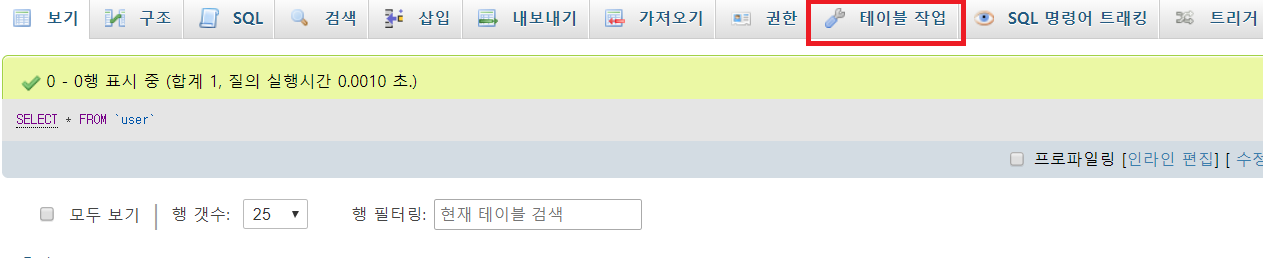 이런 경우를 막기 위해서 크게 'phpmyadmin의 테이블 작업' 혹은 '쿼리'를 이용하는 경우 두가지가 있다.