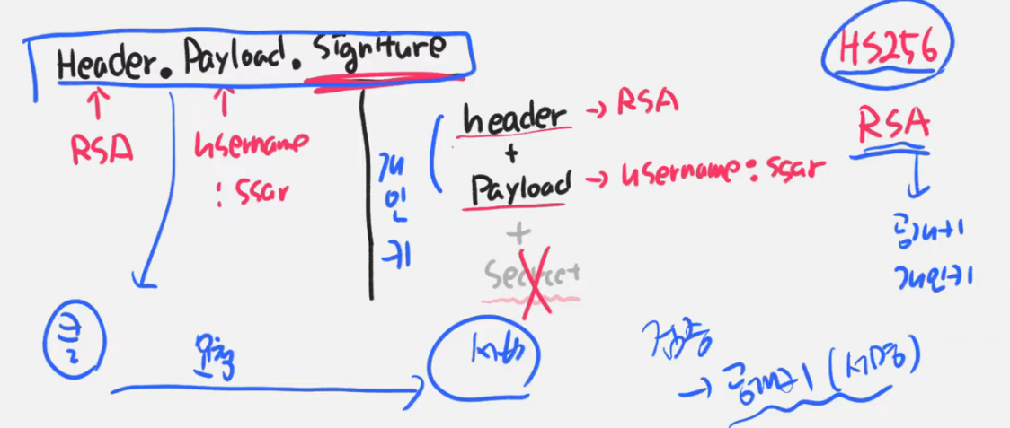 JWT - RSA 시크릿키가 필요없으니 사용하지않고, 서버쪽의 개인키로 잠군다음 자기가 잠군걸 자기 공개키로 계속 풀어내는 방식