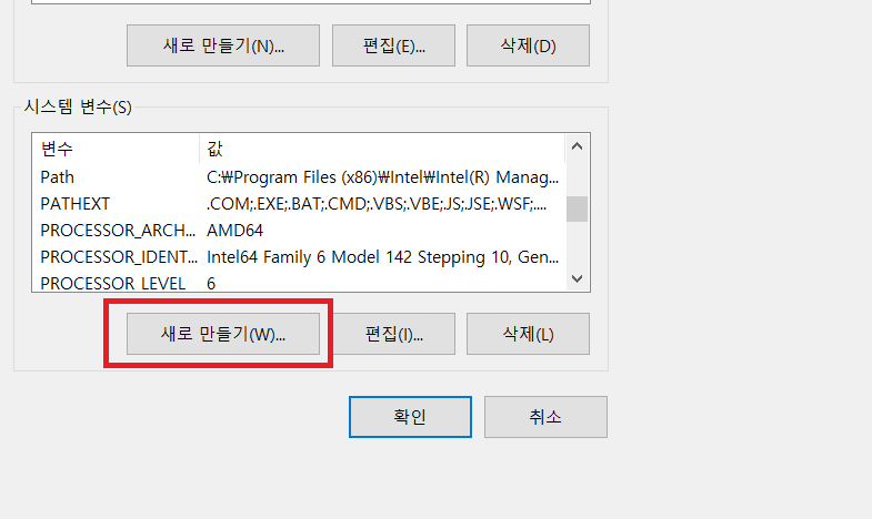시스템 변수 - Path - 새로 만들기 - 경로 설정 - 확인